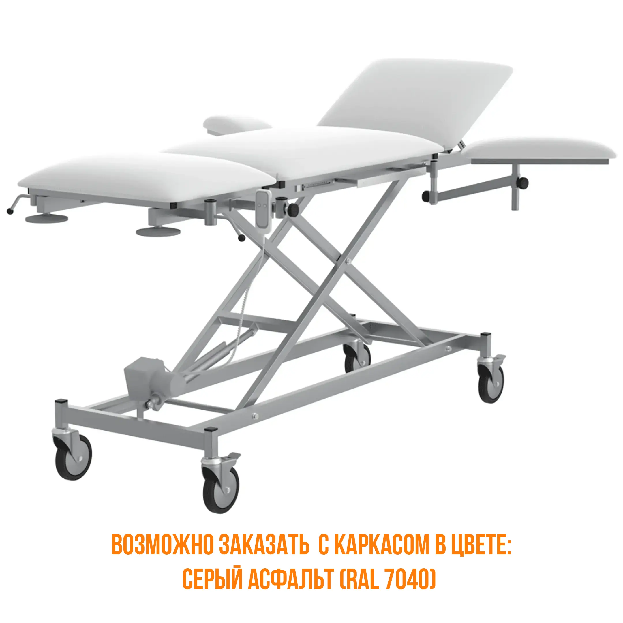 • Стол состоит из стального каркаса, трехсекционного ложа: подголовника, спинной, ножной секций и двух подлокотников.