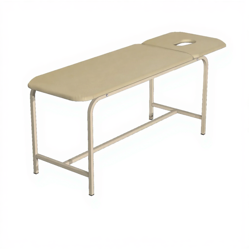 • Ложе: двухсекционное, в виде настила из ДСП 16мм, с выемкой для лица. Регулировка угла наклона подголовника: 0-45°- 5-ти ступенчатая, при помощи механизма «RASTOMAT».