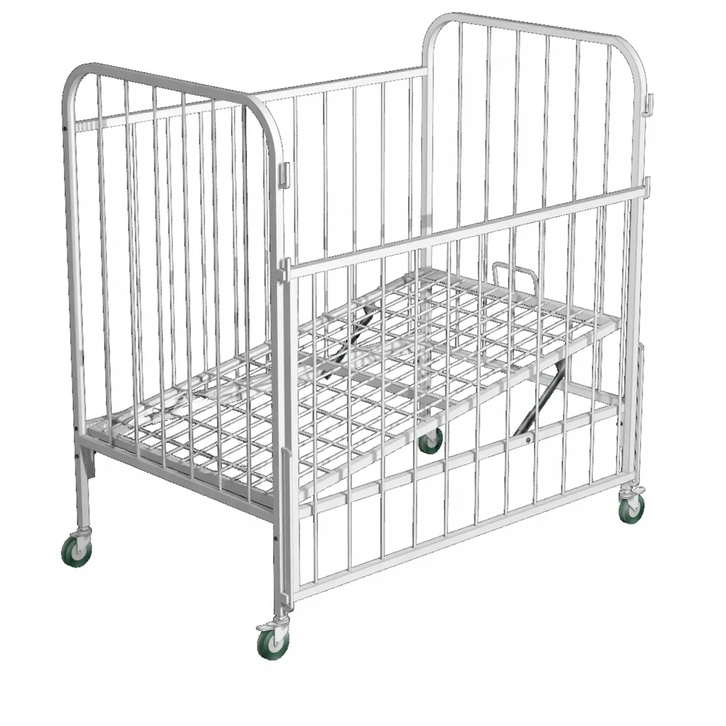 Кровать детская (1-5 лет) с ограждением КДФ (каркас белый), матрац актуальна для использования в детских учреждениях с особыми условиями. Благодаря специальному механизму можно приподнимать угол наклона рамы, даже если ребенок должен лежать неподвижно. Кроватки изготовлены из экологически чистых сплавов, что обеспечивает необходимые гигиенические условия для больных детей.