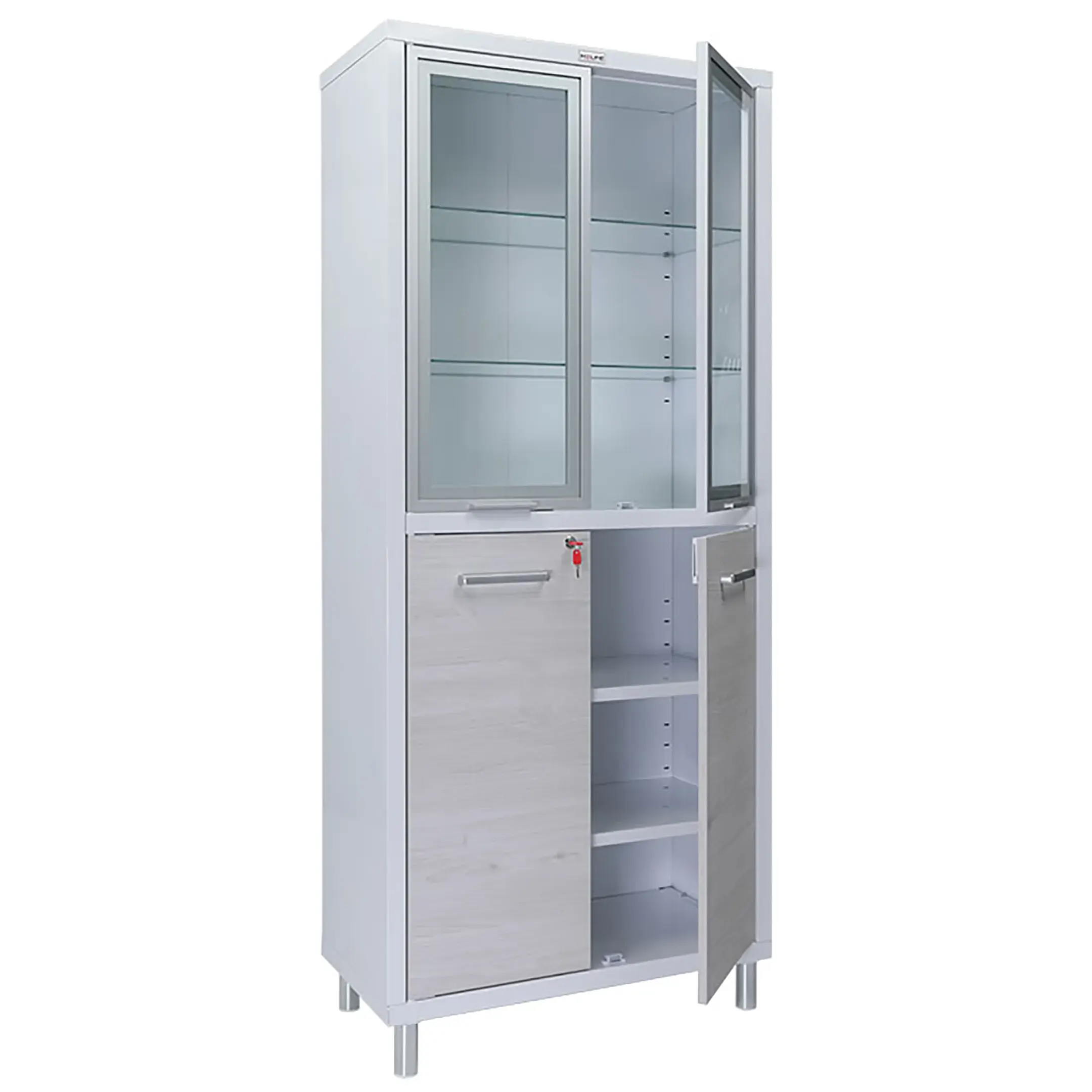 Медицинский шкаф HILFE МД 2 ШМ-SSR предназначен для хранения медикаментов, инструментов, больничных документов, карточек пациентов в медицинских учреждениях и организациях.