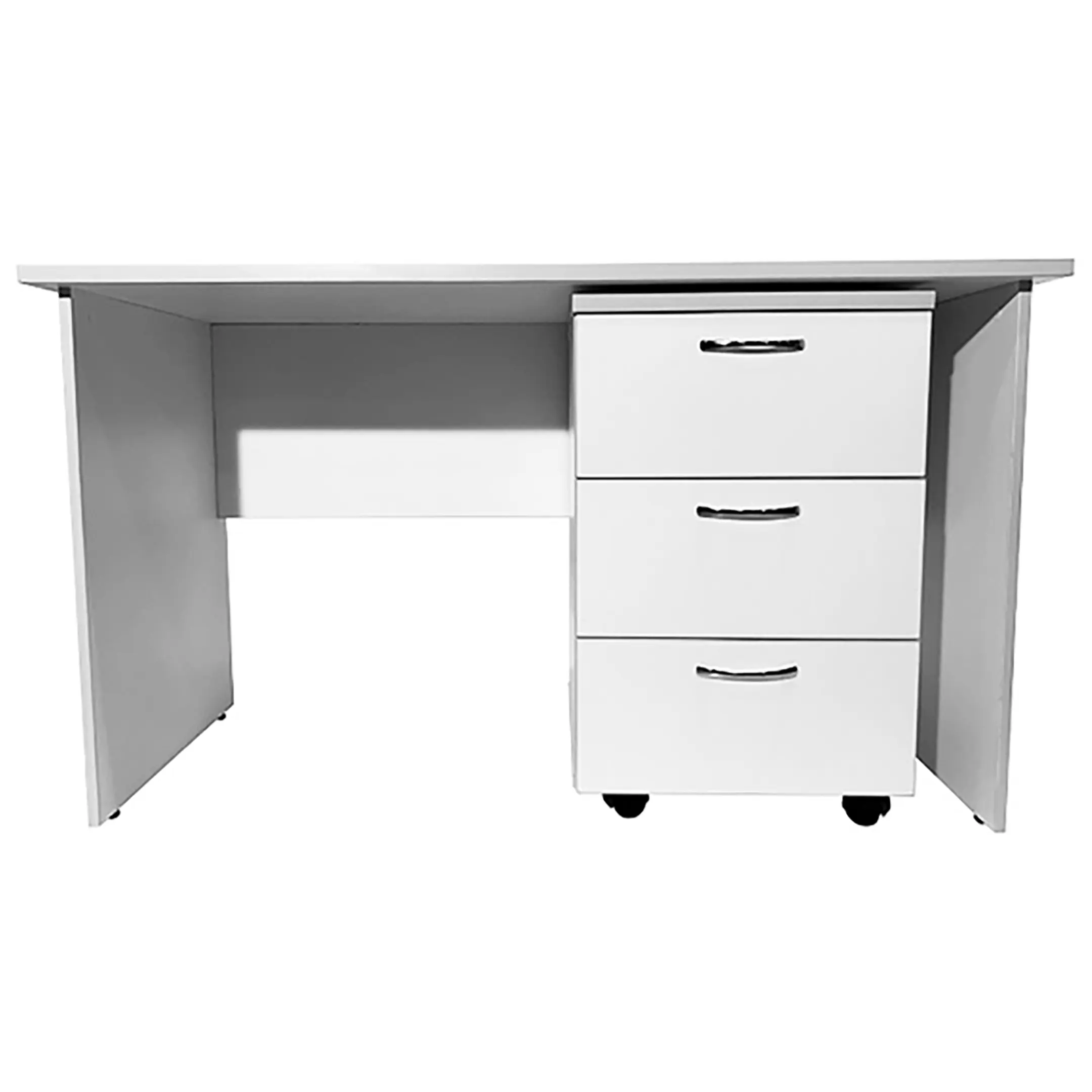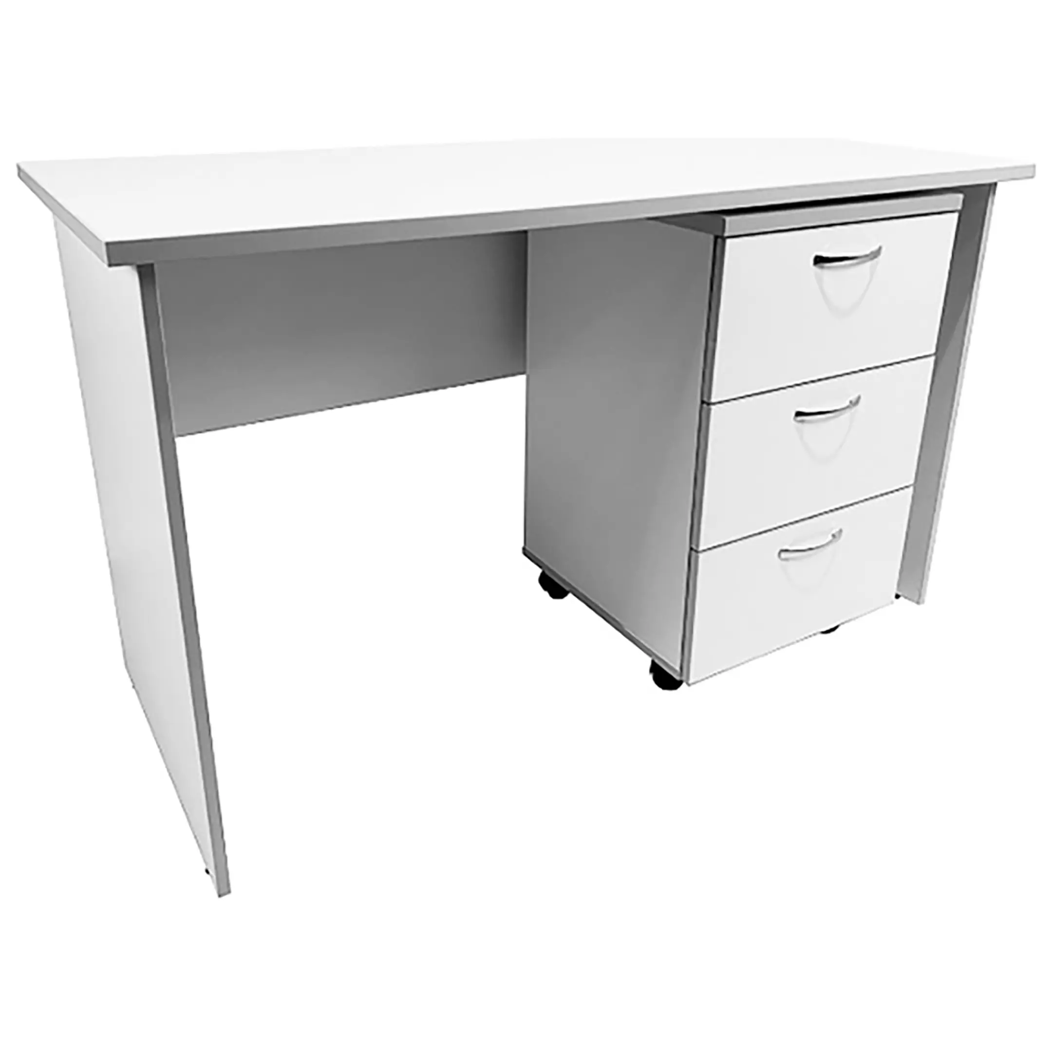 • Стол укомплектован подкатной тумбой на колесиках с тремя выдвижными ящиками.