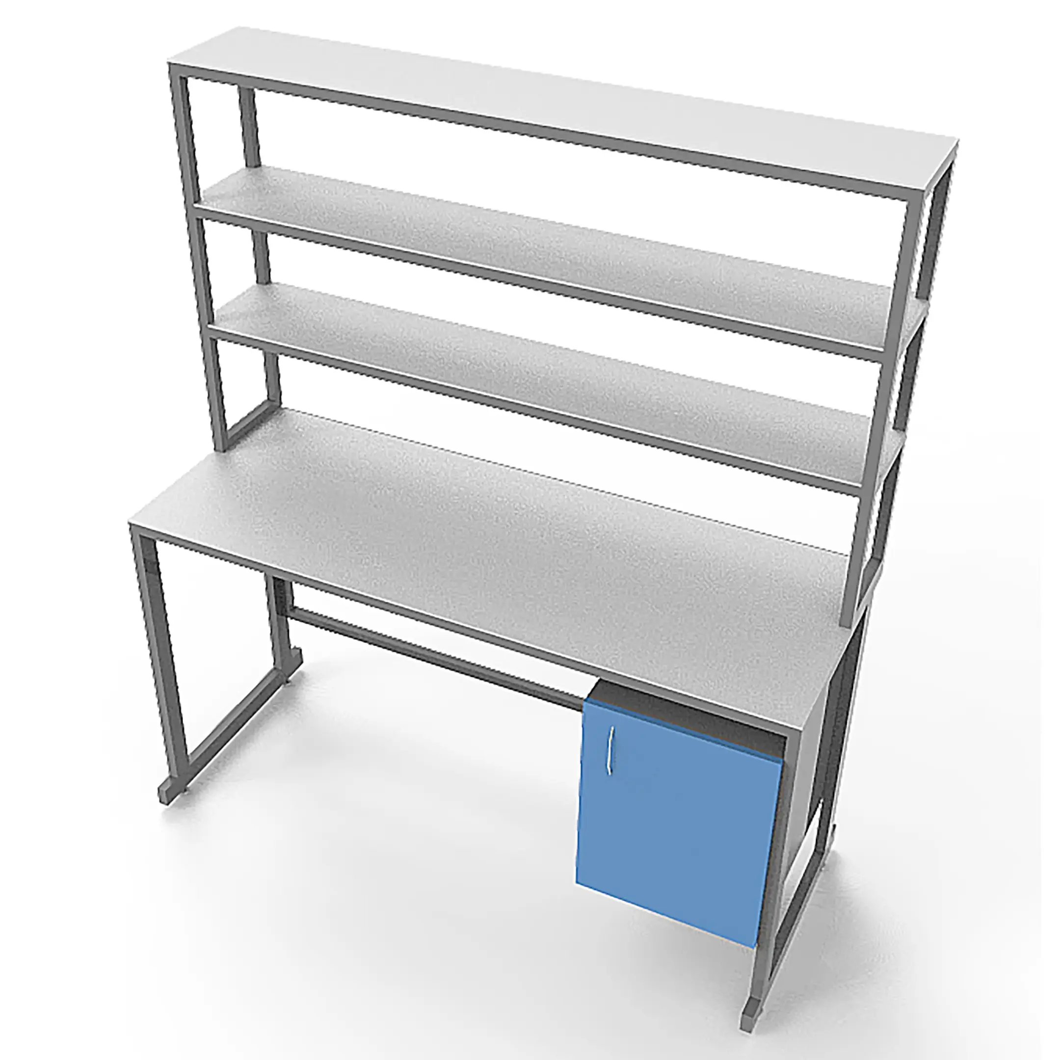 - Функциональная надстройка — три полки для дополнительного размещения оборудования, общая высота стола с надстройкой 1850 мм.