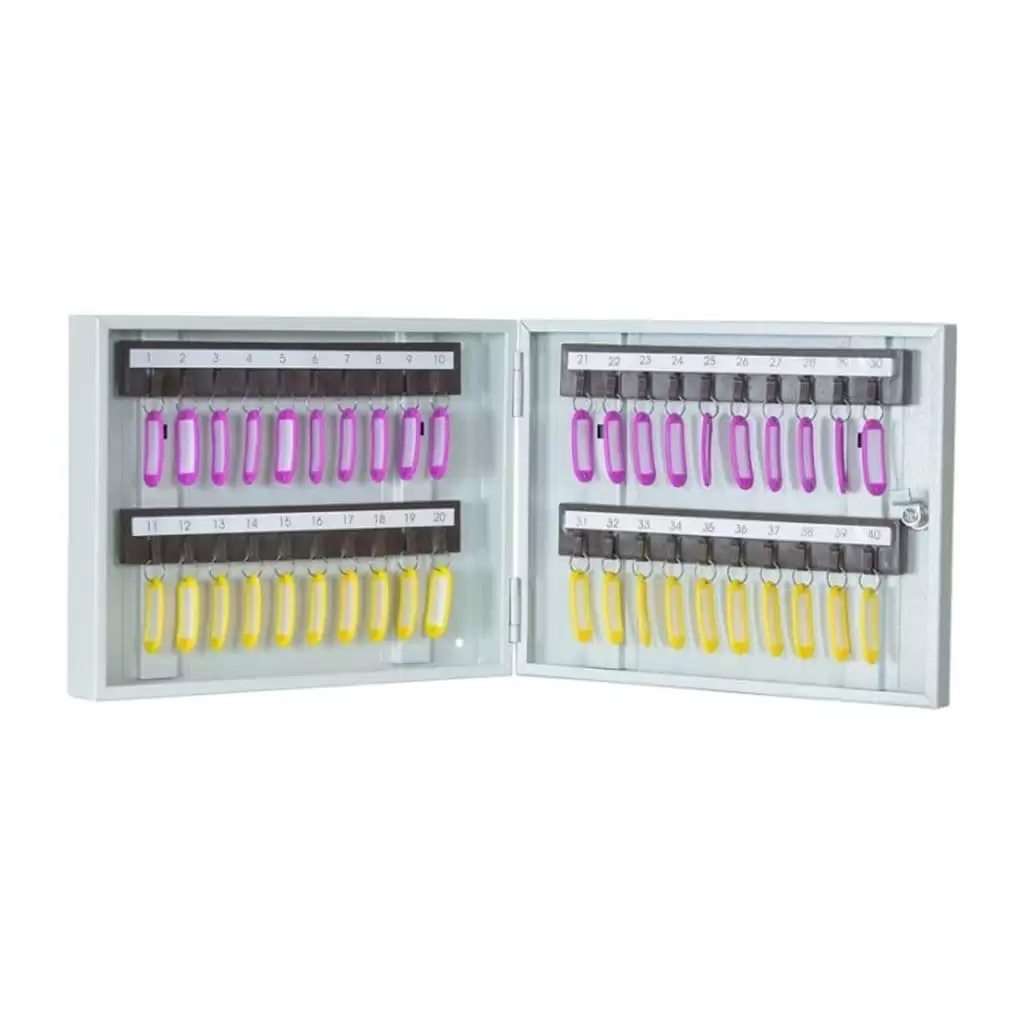 Ключница КЛ-40 (без брелков) — это компактная и универсальная базовая конструкция для систематизированного хранения ключей в условиях, где требуется самостоятельно выбрать и установить систему маркировки, соответствующую внутренним стандартам или уже существующей практике учета. Модель представляет собой навесной металлический шкаф, где индекс «КЛ-40» указывает на его стандартную вместимость (до 40 ключей), а обозначение «без брелков» означает, что модель поставляется в виде готового защищенного каркаса с ячейками. Конструкция предназначена для обеспечения порядка и безопасности хранения, предоставляя гибкость для внедрения собственных решений по идентификации ключей — цветовых меток, номерных бирок, QR-кодов или других систем.