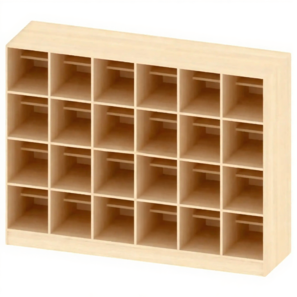 - Персонализированное хранение для группы — 24 индивидуальные ячейки позволяют выделить отдельное, подписанное место для каждого члена группы (класса, спортивной секции), что приучает к порядку и ответственности.