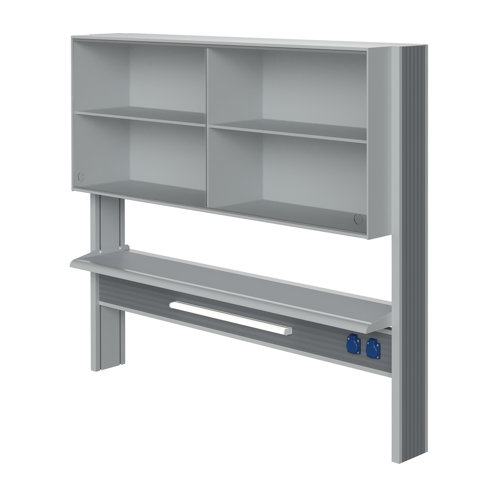 Технологический стеллаж со шкафом 600 мм для пристенного стола Mod. 1500 ТСПШ-60 — это специализированное лабораторное оборудование, устанавливаемое на пристенные столы и предназначенное для хранения лабораторной посуды, приборов, реактивов и принадлежностей. Модель оснащена вместительным шкафом с двумя раздвижными стеклянными дверями, двумя полками, блоком электророзеток повышенной защиты и светодиодным светильником для местного освещения рабочей зоны.