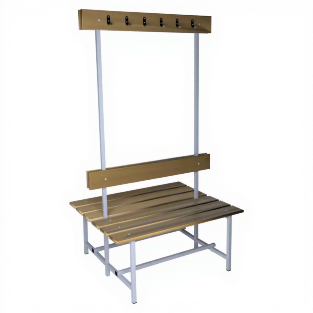 Скамья с вешалкой двухсторонняя 12 крючков — это надежное и функциональное решение для оборудования раздевалок, вестибюлей, гардеробных комнат в спортивных учреждениях, школах, производственных помещениях и т.п.