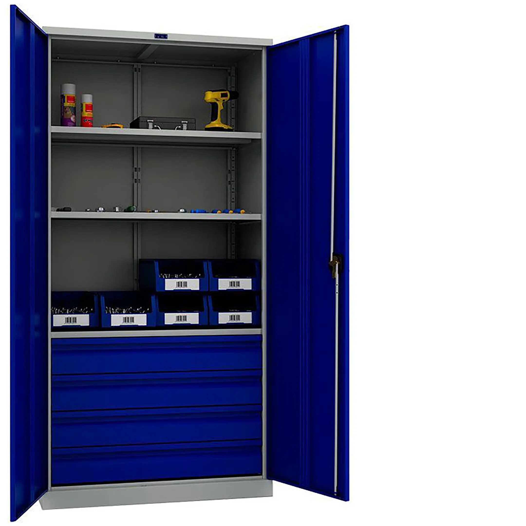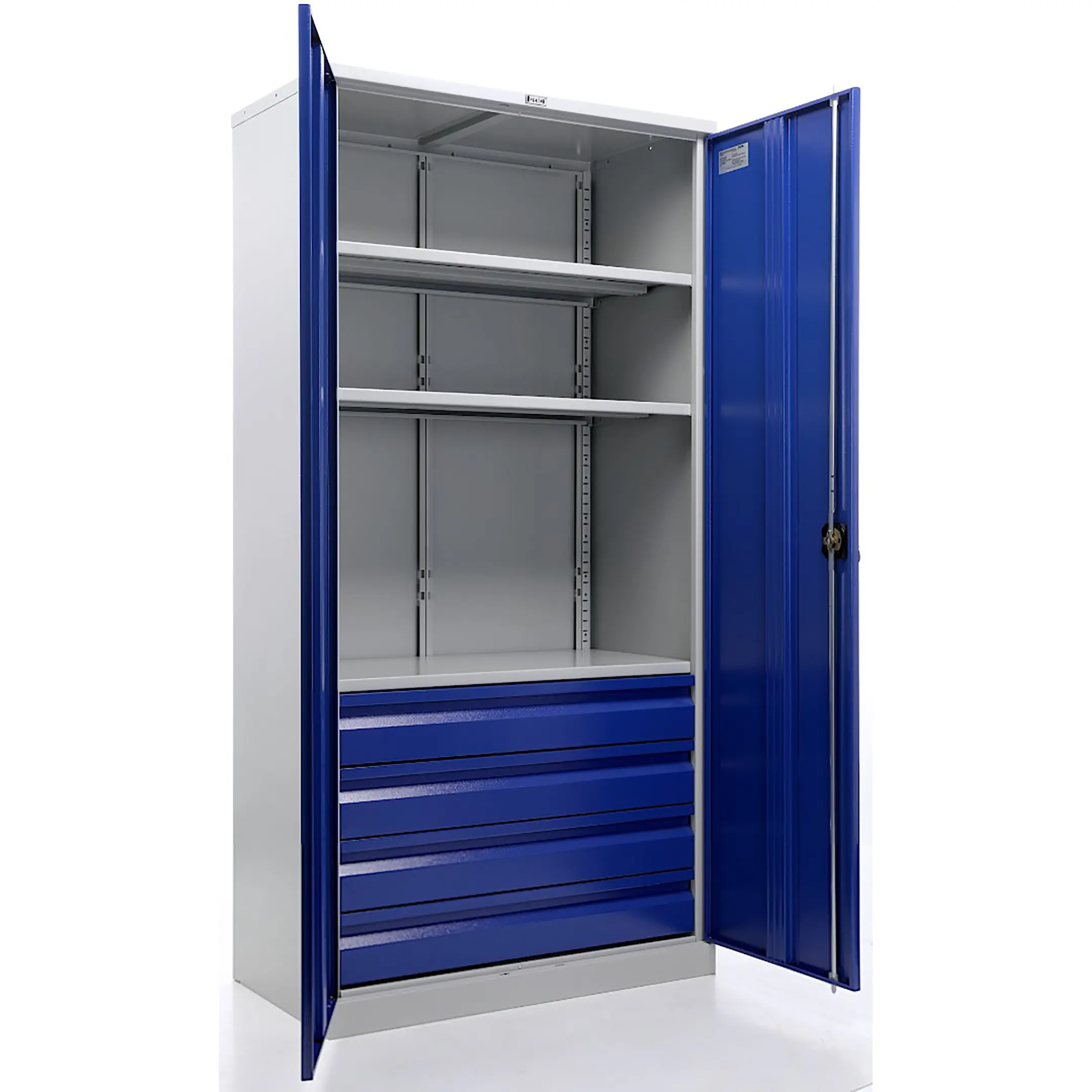 - Надежная защита и безопасность — прочный стальной корпус и запирающиеся на встроенный замок двери надежно защищают ценный инструментарий от кражи, несанкционированного доступа, а также от пыли и производственных загрязнений в нерабочее время.