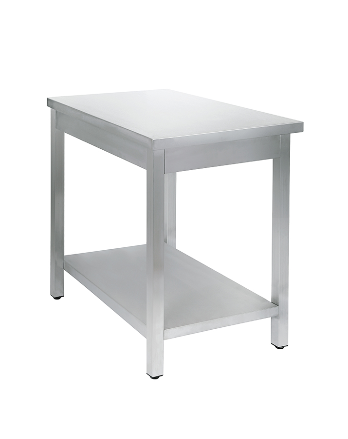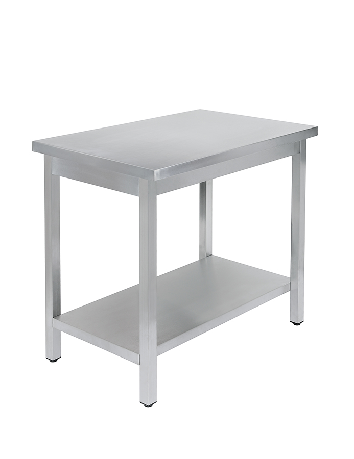 Основное преимущество стола, помимо универсальности, — материал изготовления. Стол сделан полностью из нержавеющей стали AISI 430: ножки, столешница, каркас. Нержавейка — это лучший вариант для оснащения общепита, т.е. не боится прямого контакта с водой и паром, устойчива к перепадам температур, защищена от окисления и ржавчины.