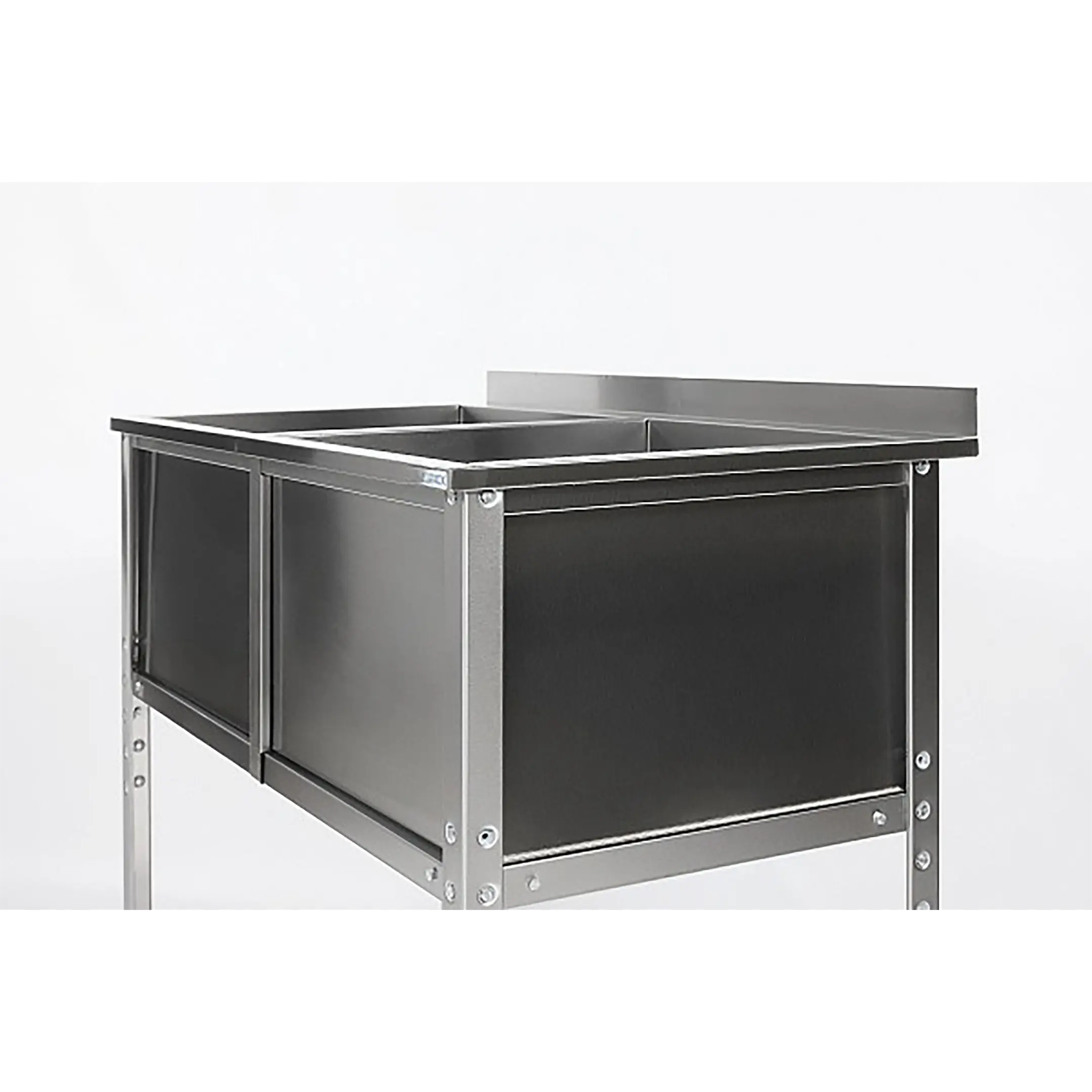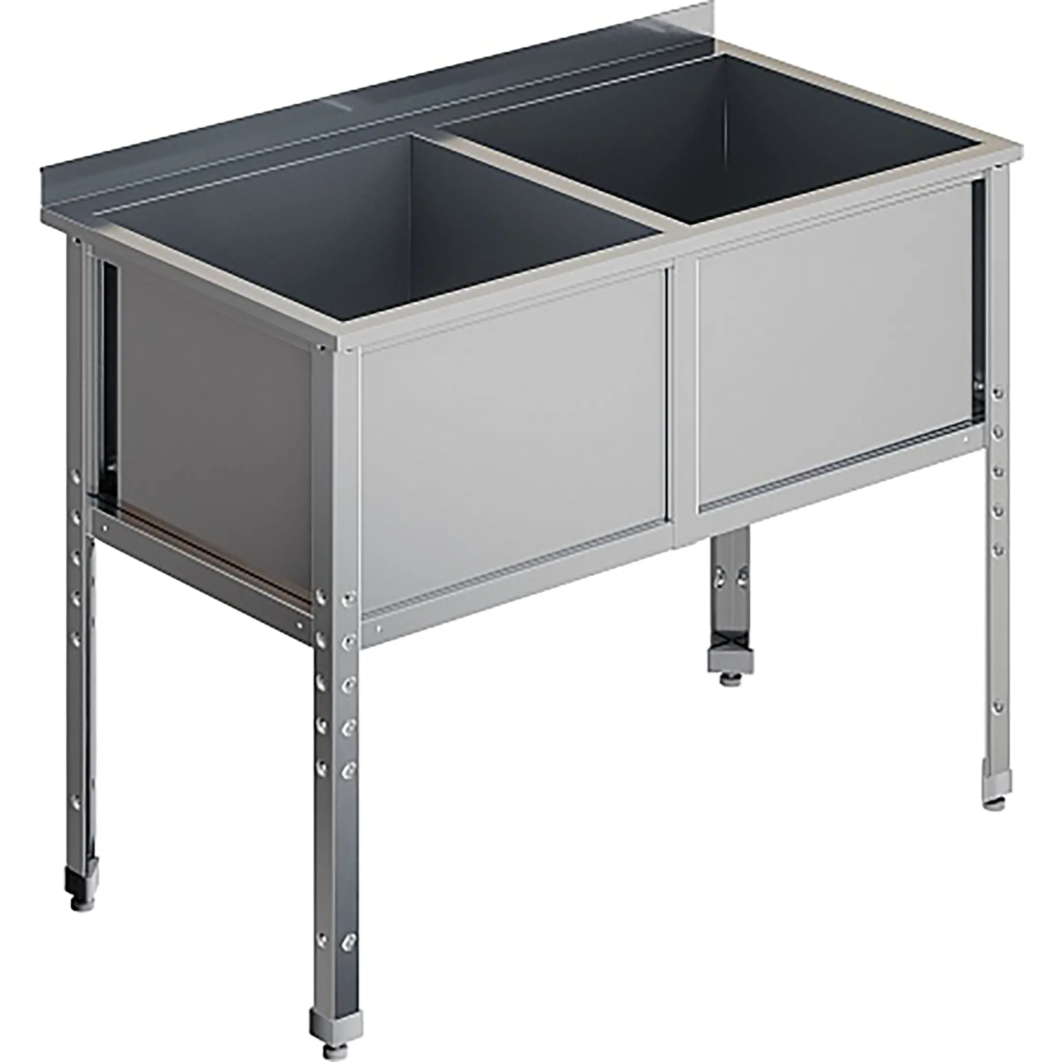 Ванна моечная двухсекционная с бортом ВМС-2/8-Б-ЭН разработана для применения в моечных отделениях предприятий общепита и торговли различного формата, пищевых производств и пищеблоков для мытья посуды, кухонного инвентаря, продуктов питания и рук персонала.