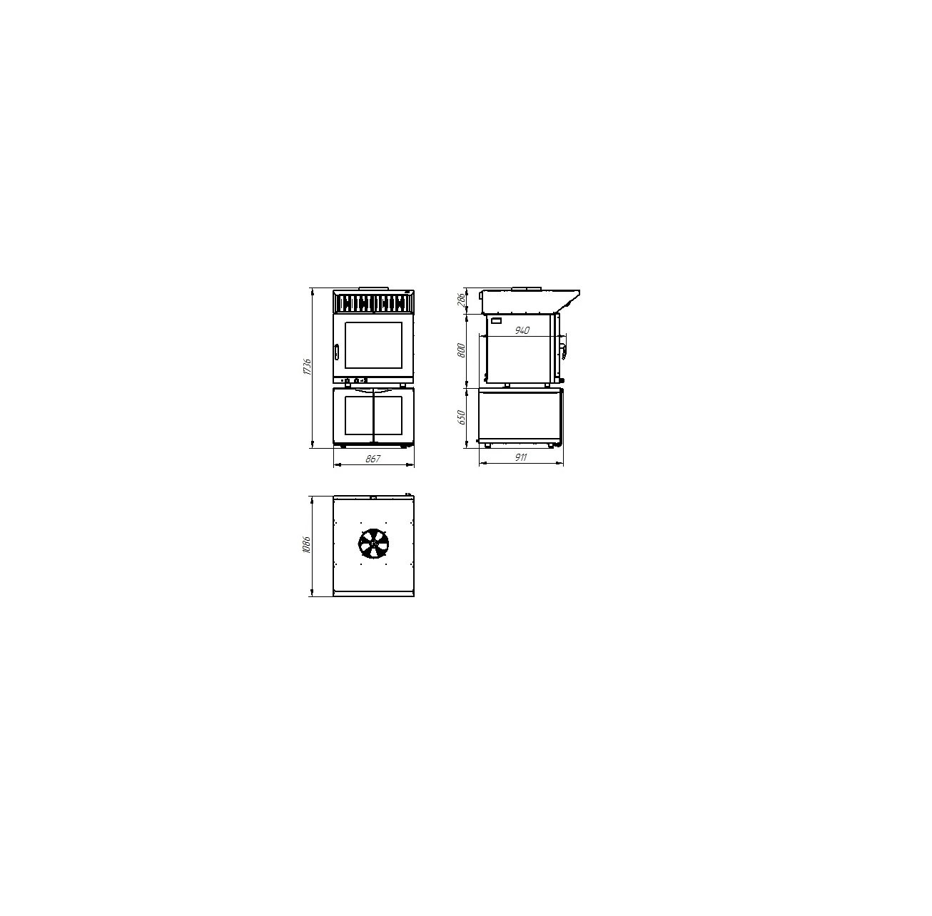 ЗОНТ вытяжной встраиваемый ЗВВ-6-6/4 для конвекционных печей типа КЭП-6