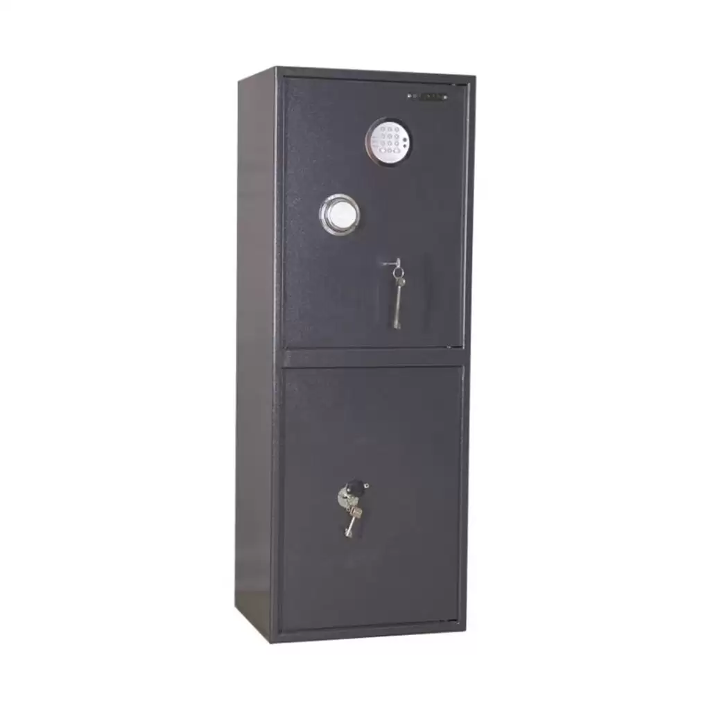 • верхнее отделение запирается на электронный замок, нижнее на ключевой;