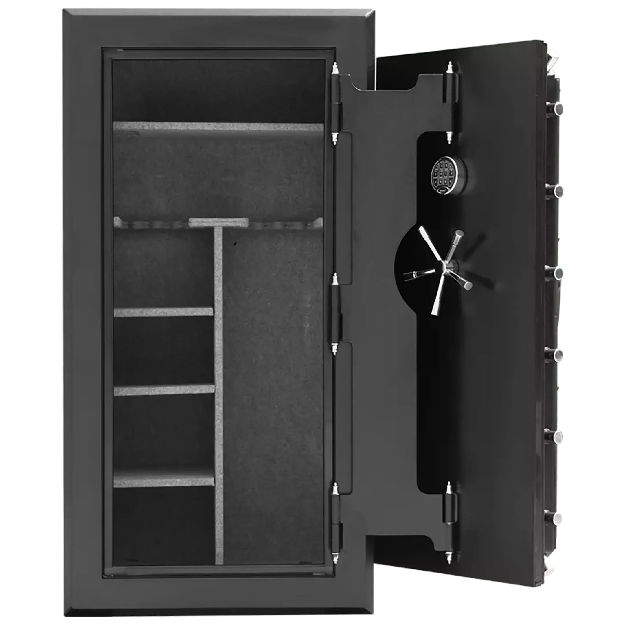 • Дверца сейфа оборудована дополнительными петлями, позволяющими открывать ее в разных положениях