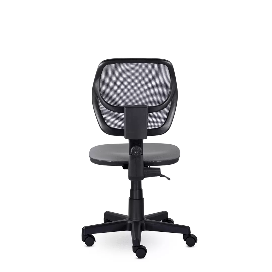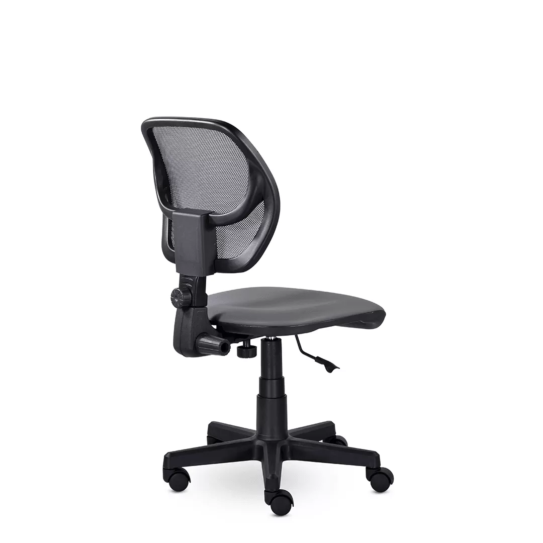 - Эргономичная поддержка спины без подлокотников — анатомическая форма спинки обеспечивает комфортную посадку и способствует правильной осанке, а отсутствие подлокотников делает кресло более компактным и удобным для работы за столом стандартной высоты.