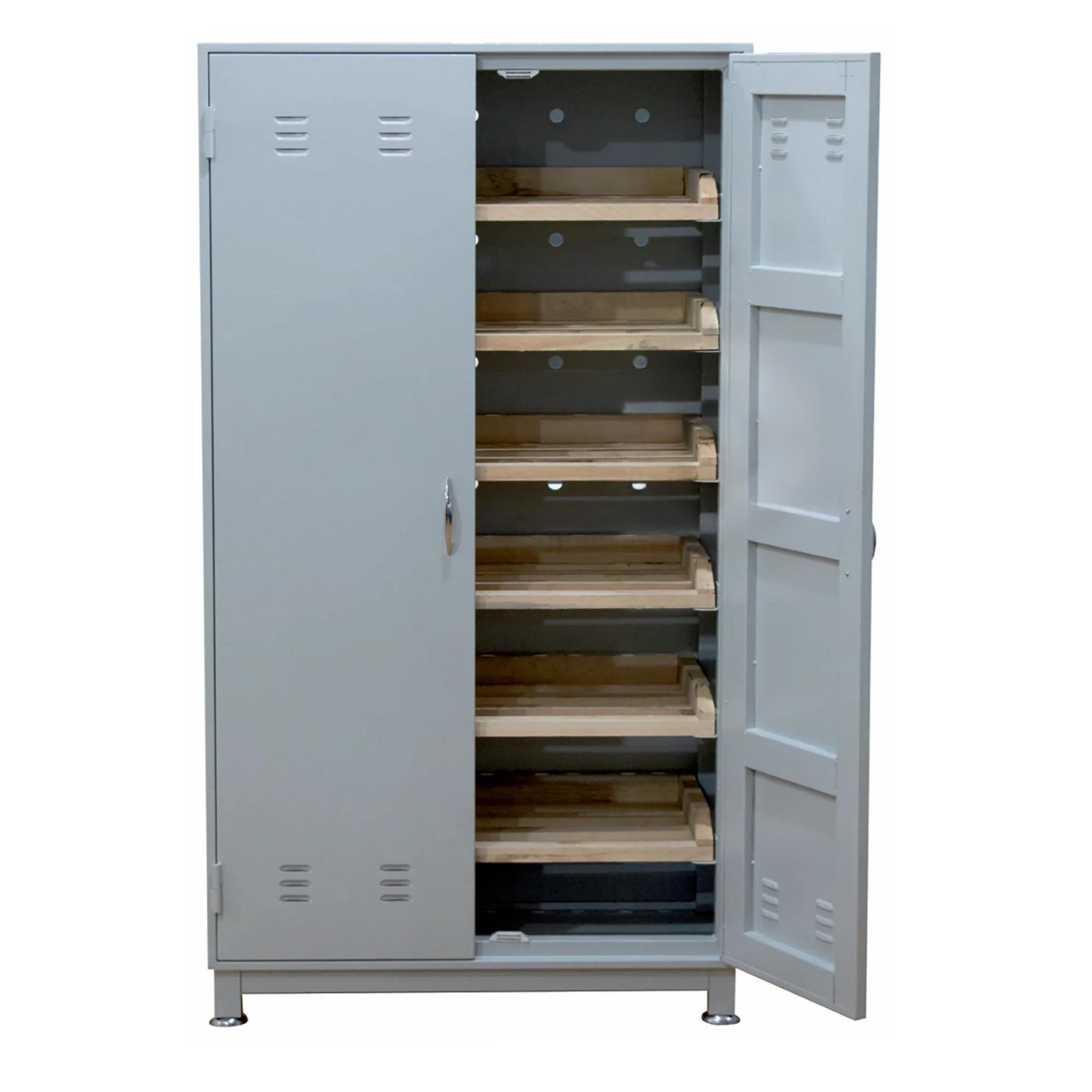- Универсальность и прочность — металлическая конструкция обеспечивает долговечность и устойчивость. Такой шкаф может также использоваться для хранения других продуктов, требующих вентилируемого хранения, или кухонного инвентаря.