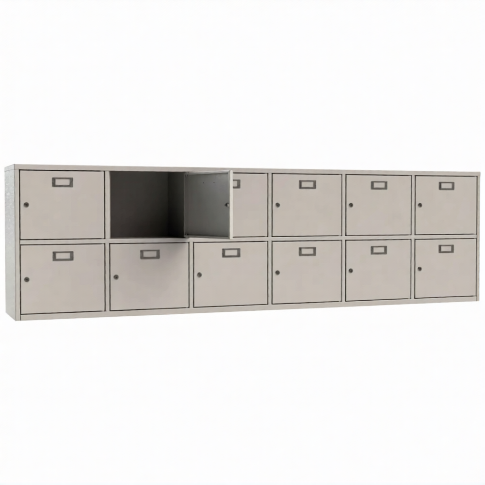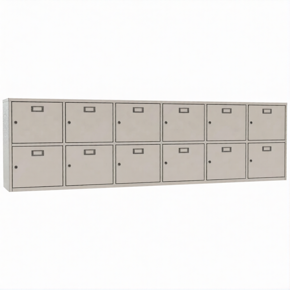 - 12 ячеек для касок. Каждая ячейка оснащена почтовым замком с двумя ключами в комплекте.