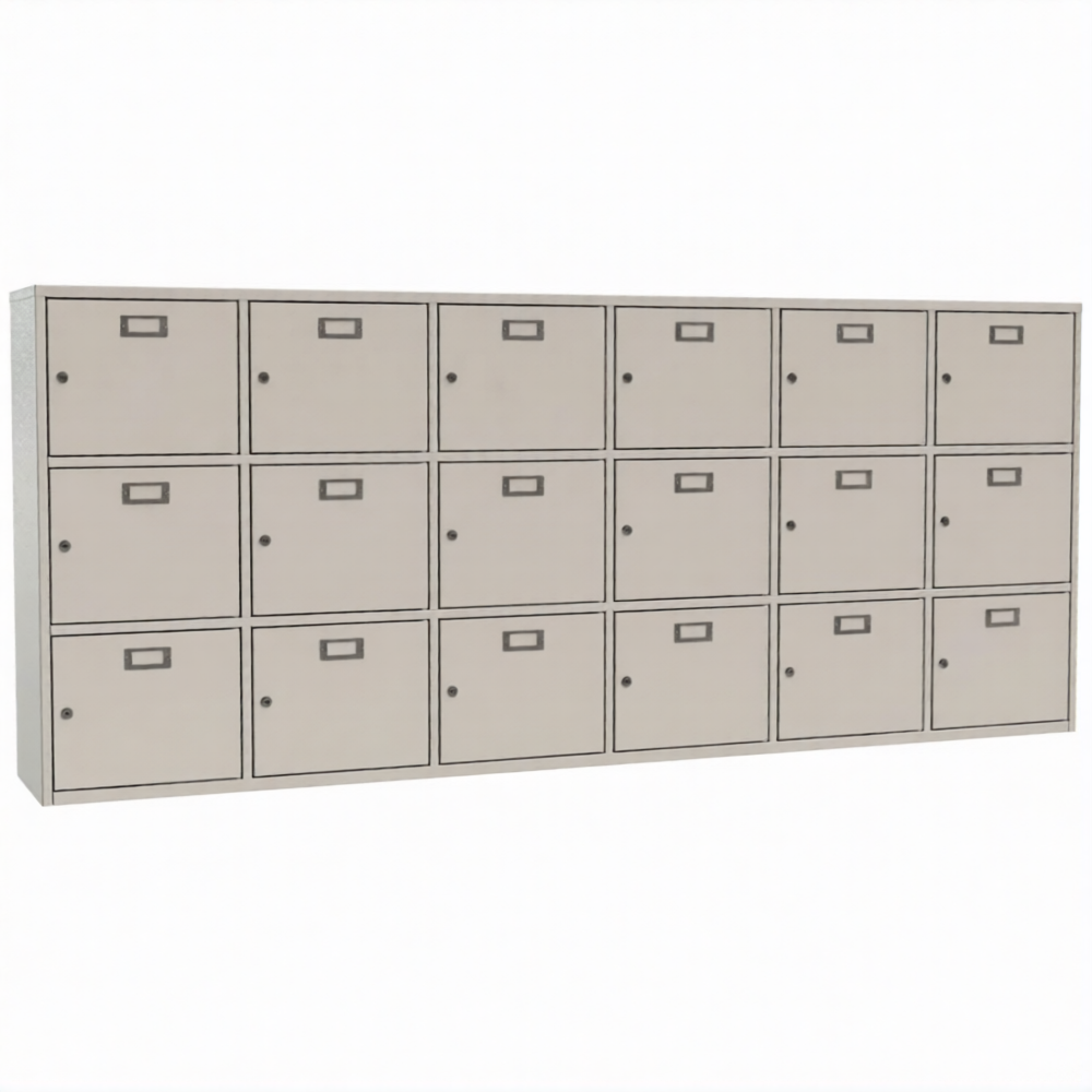 • 18 ячеек для касок. Каждая ячейка оснащена почтовым замком с двумя ключами в комплекте.