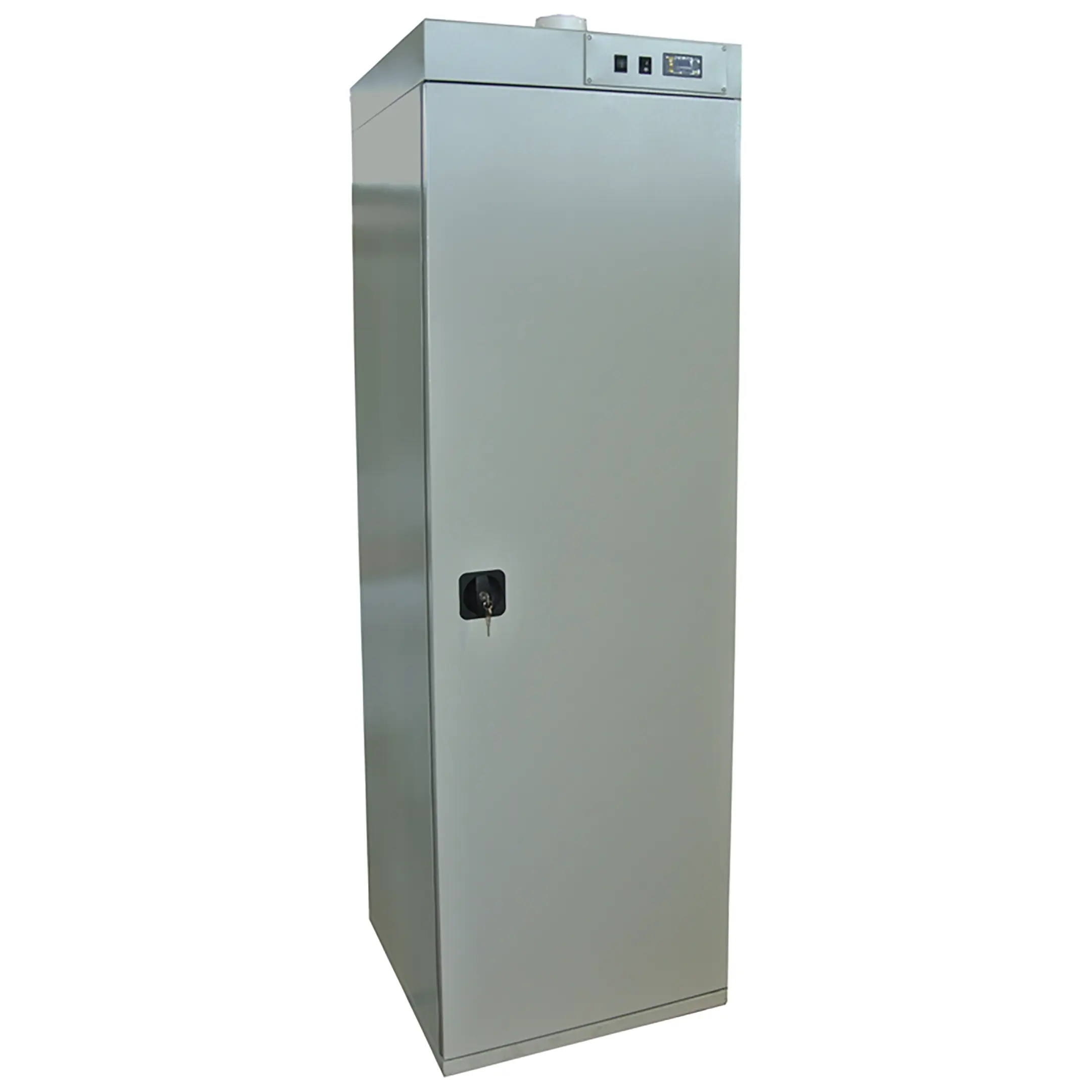 - Компактность и универсальность — модель имеет оптимальные габариты для помещений с ограниченным пространством. Благодаря съемной штанге шкаф легко адаптируется под различные задачи: от сушки комплекта спецодежды с обувью до обработки только спортивного инвентаря.