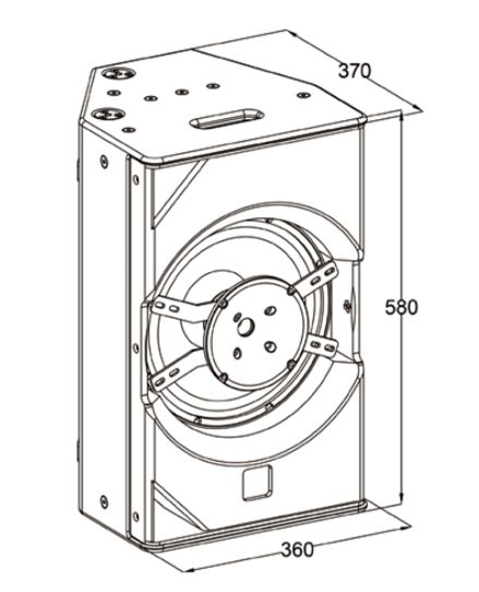 Пассивная полнодиапазонная двухполосная акустическая система; НЧ: 1x12", звуковая катушка 75 мм, ферритовый магнит; ВЧ: 1x1.75“, звуковая катушка 44 мм, неодимовый магнит; Мощность (AES): 450 Вт; Частотный диапазон: 45 Гц - 20 кГц (-10 дБ); Чувствительность: 95 дБ; Макс. SPL: 127 дБ пик; Угол раскрытия (H x V): 80° x 80°, 4 Ом
